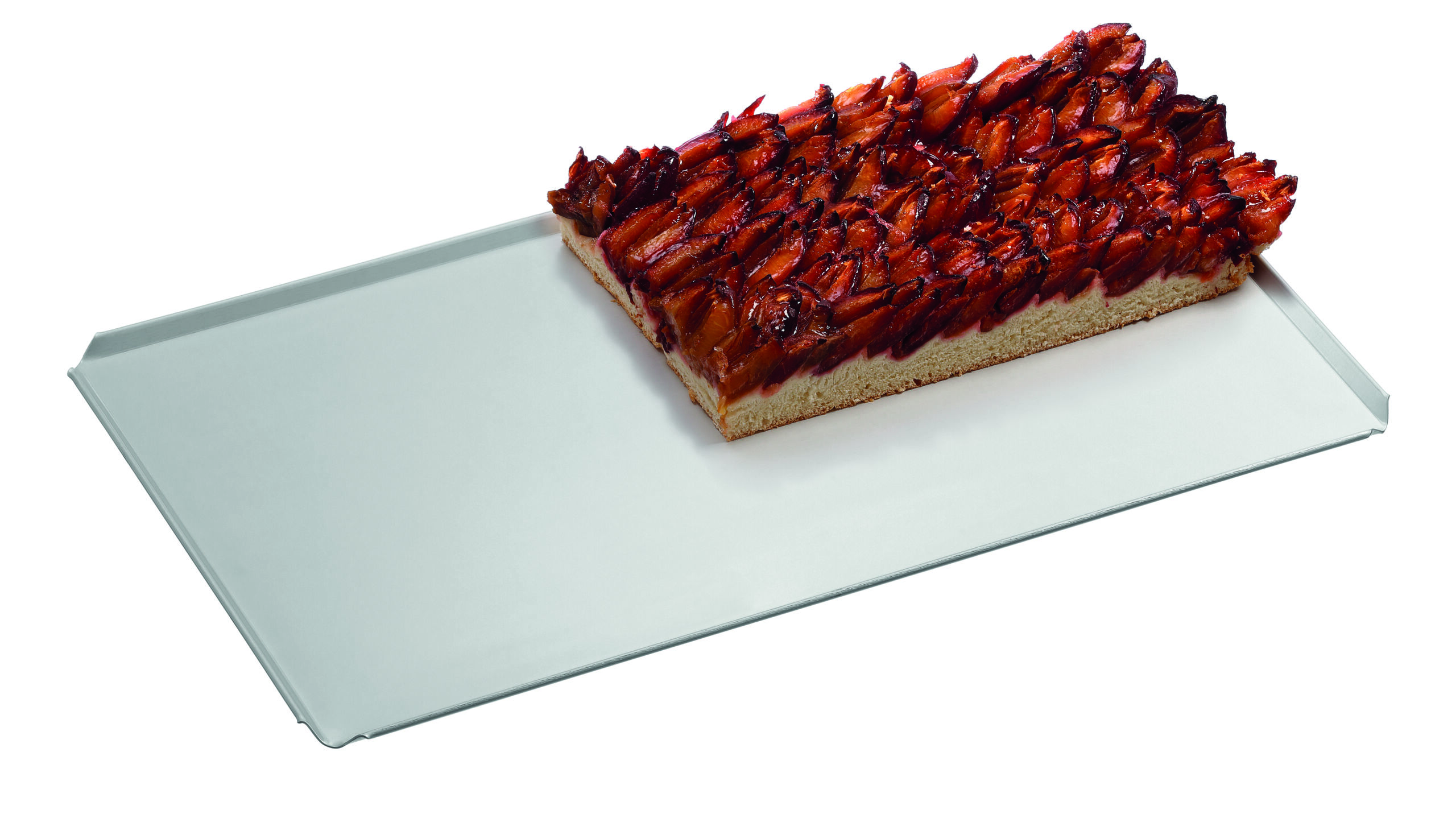 Das Backblech aus Aluminium im 1/1 GN-Format ist temperaturbeständig bis 260 °C. Der 4-seitige Rand ermöglicht ein sicheres Backen und Transportieren.
