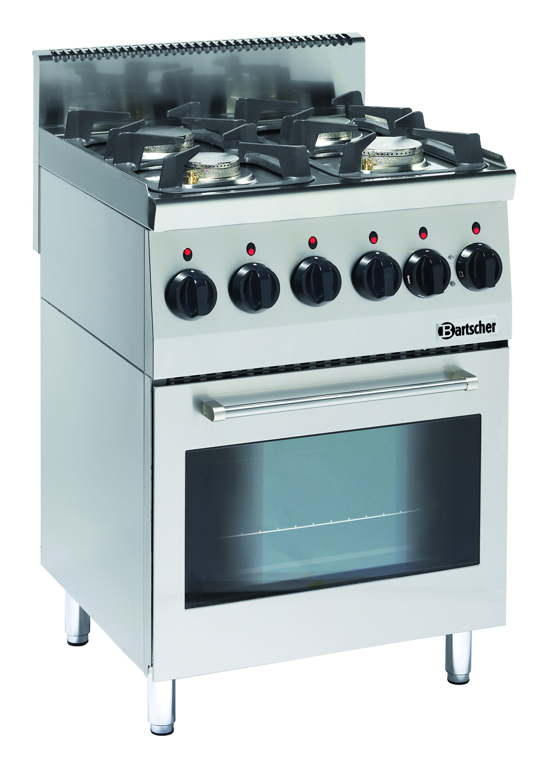 Hauptmerkmale des Bartscher Gasherds 600 mit 4 Flammen und Elektrobackofen:
