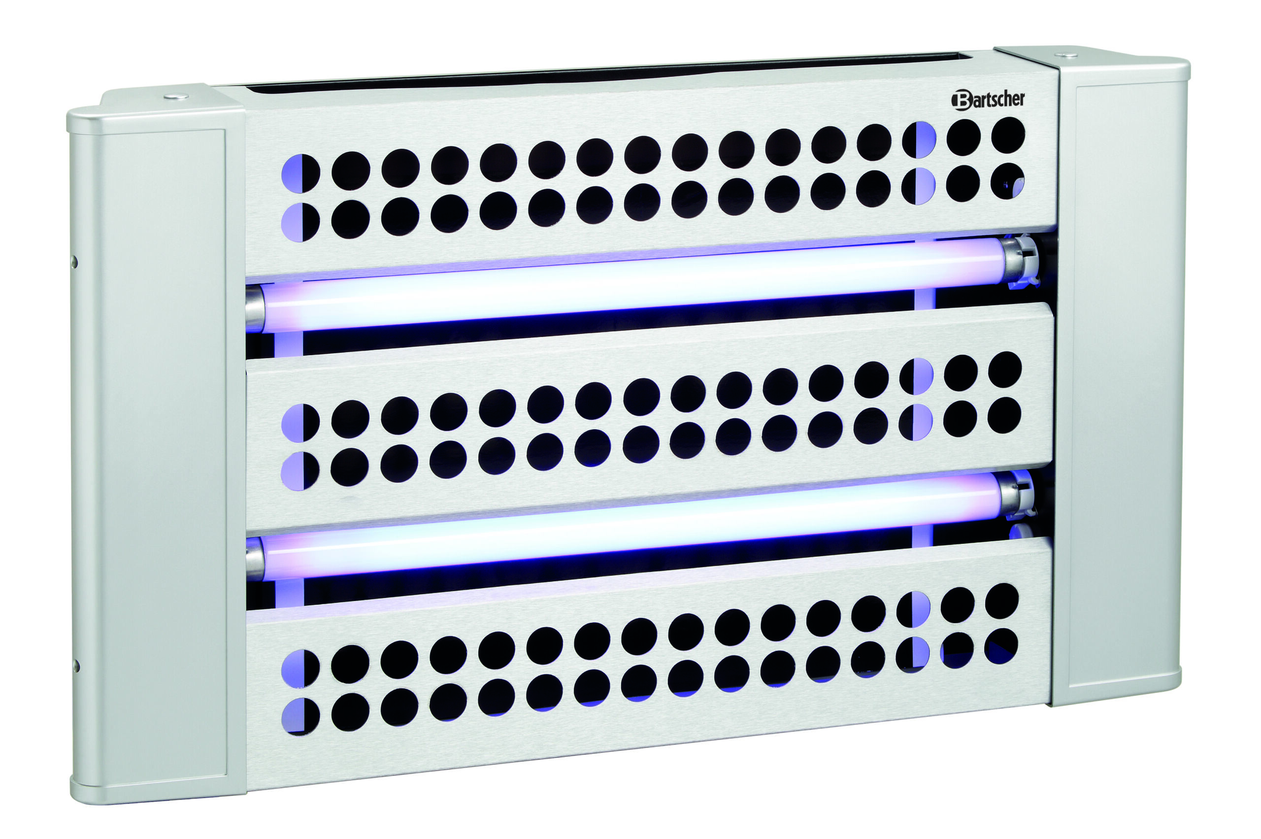 Sicher, geräuschlos und hygienisch. Insekten werden durch das UV-Licht angelockt und bleiben auf der dahinter angebrachten Klebefolie haften.