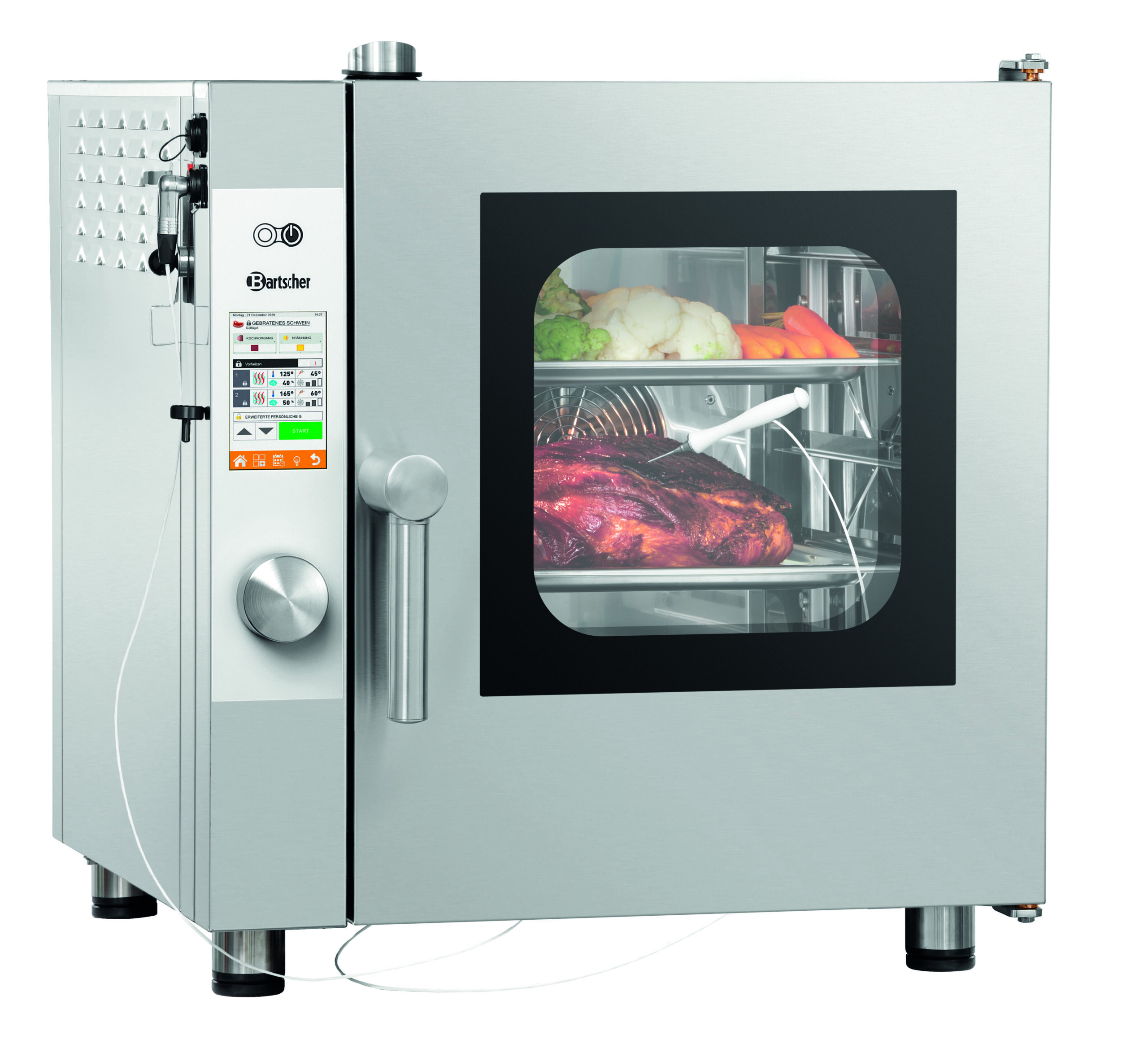 Der Bartscher Kombidämpfer der Serie Silversteam mit elektronischer Bedienung und 5 Einschüben im 2/3 GN Format – Der ideale Partner in jeder Küche. Mit der Rack-Control-Funktion können verschiedenste Speisen zu unterschiedlichen Zeiten zubereitet werden. Eine Erleichterung, bei der der Silversteam für Sie alles im Blick hat.