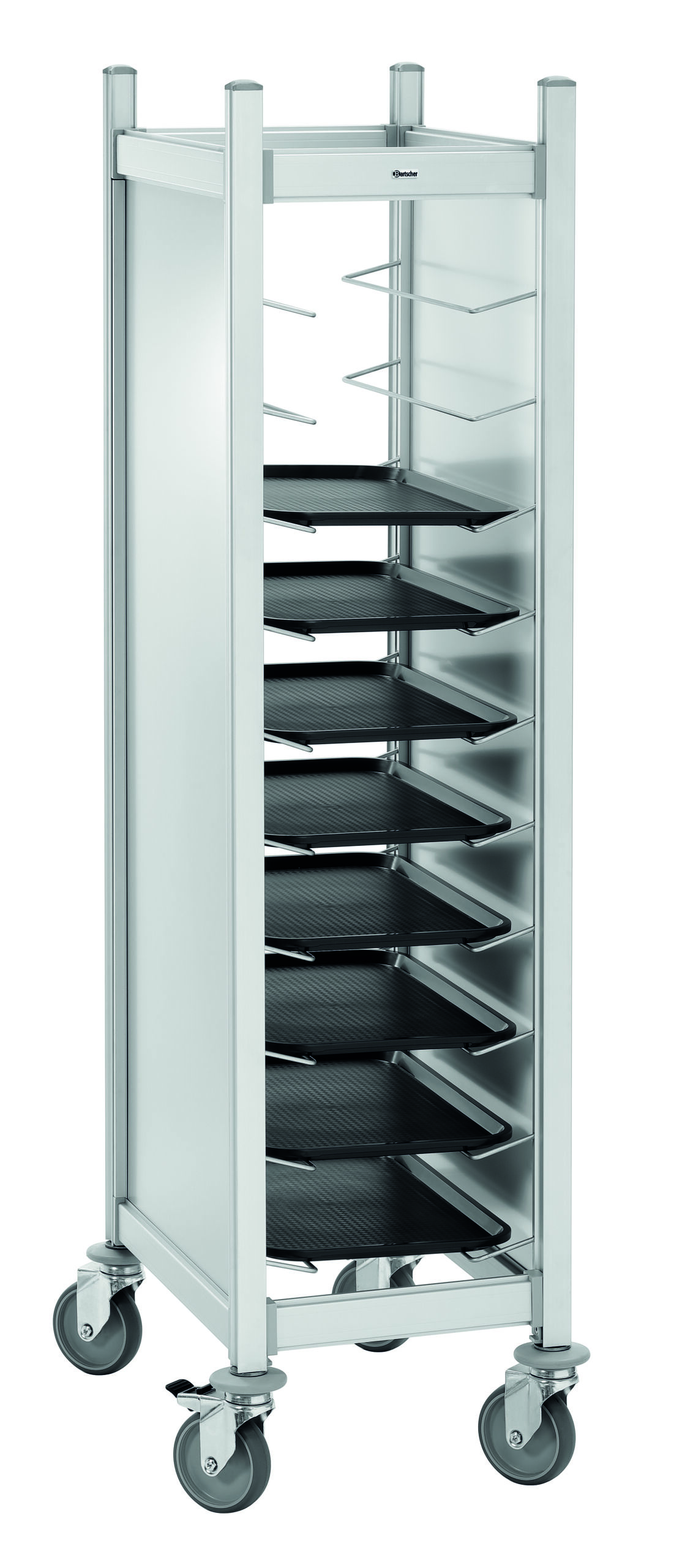 Der robuste Abräumwagen überzeugt durch seine hohe Tragfähigkeit und die extra großen Einschübe im 1/1 GN-Format.