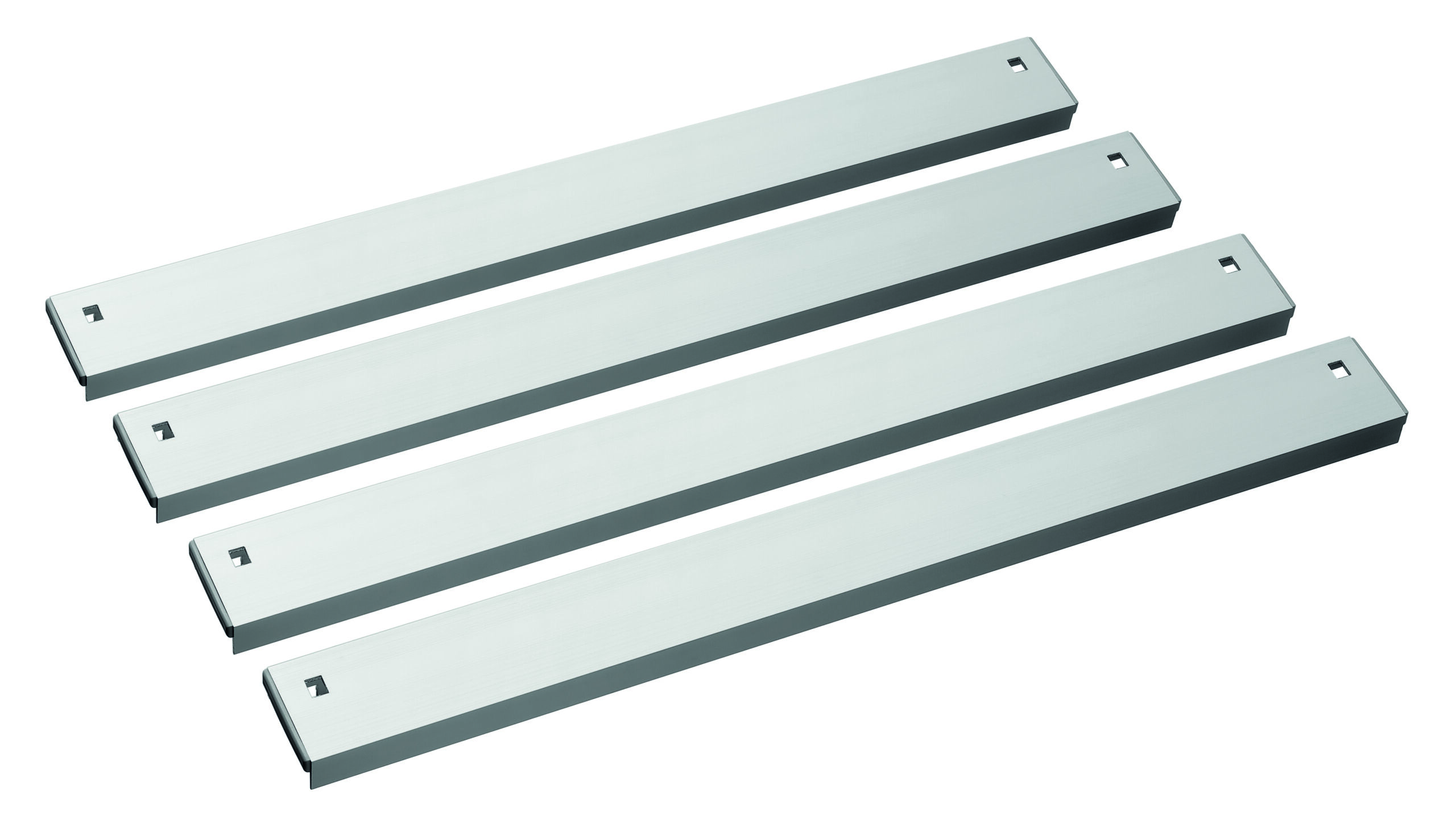 Mit Hilfe der Verbindungsleisten können 560 mm tiefe Regale mit weiteren Regalelementen zur Eckaufstellung verbunden werden. Die Aufstellung im 90 Grad-Winkel ermöglicht eine flexible, organisierte und platzsparende Erweiterung von Lagerflächen im Gastronomiebereich.