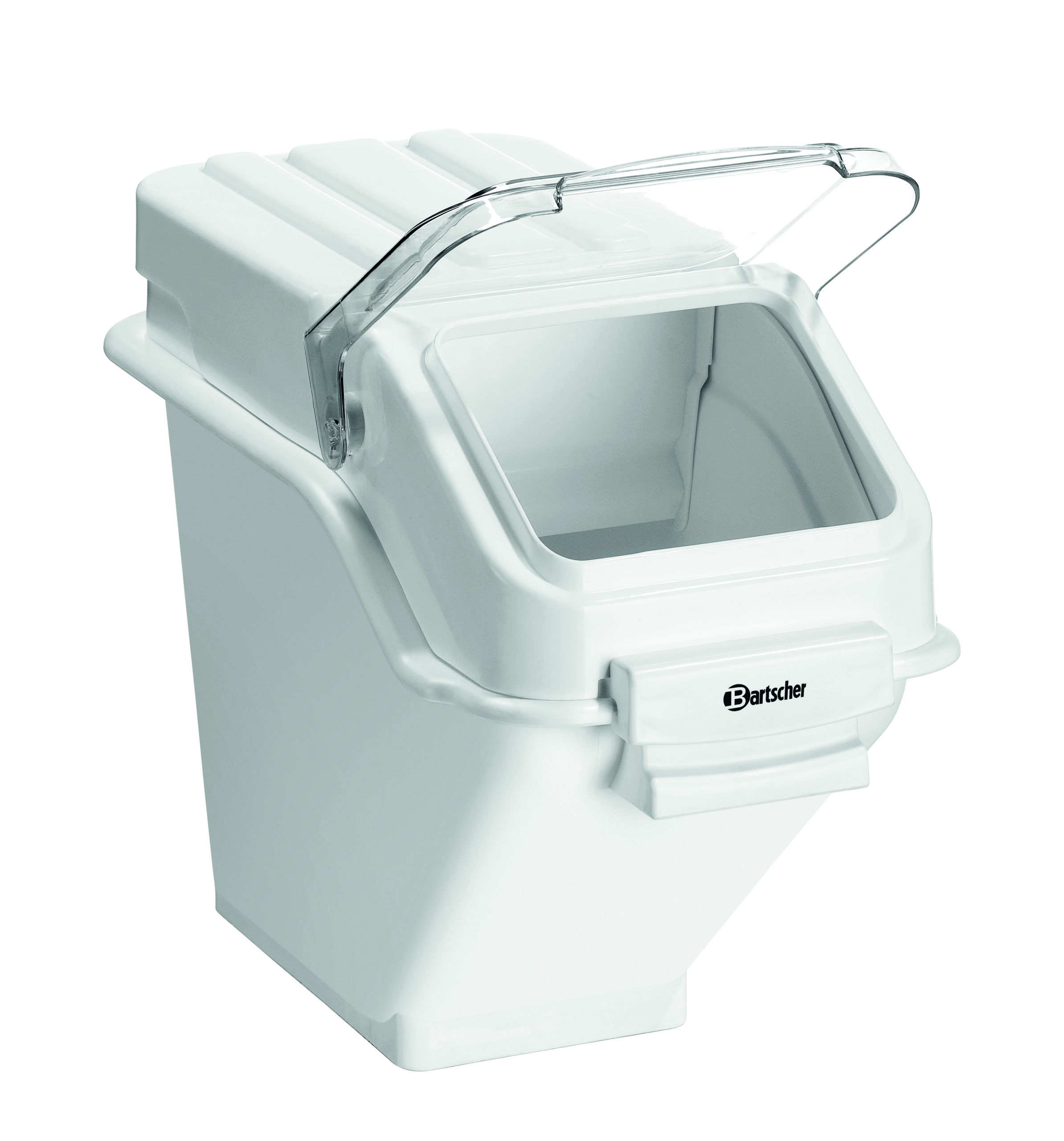Robuster, stapelbarer Vorratsbehälter für eine hygienische Bevorratung verschiedenster Getreide-Sorten sowie von Gewürzen, Reis oder Nudeln. Der praktische transparente Klappdeckel ermöglicht einen schnellen Überblick welche Trockenware sich in dem Behälter befindet.